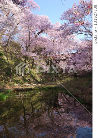 春の信州 伊那路~満開を迎えた高遠城址公園のコヒガンザクラ(薬研堀の水面から桜雲橋の桜並木)
