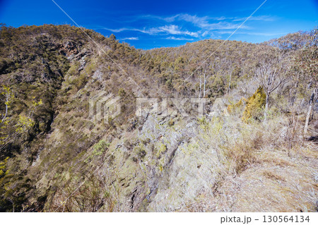 Rugged rocky mountainside with dry winter vegetation