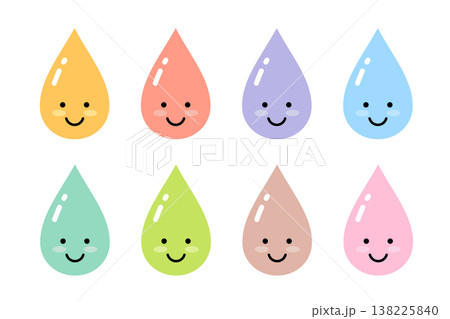 水滴のカラフルなかわいいキャラクターセット