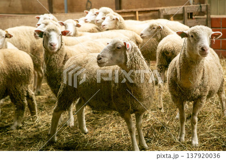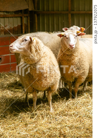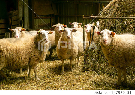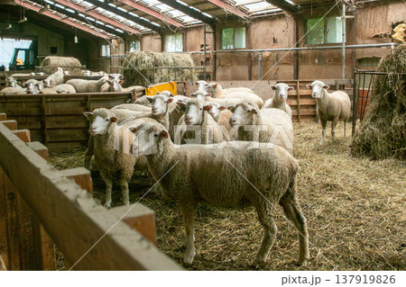 畜産農場の羊 室内飼育の様子
