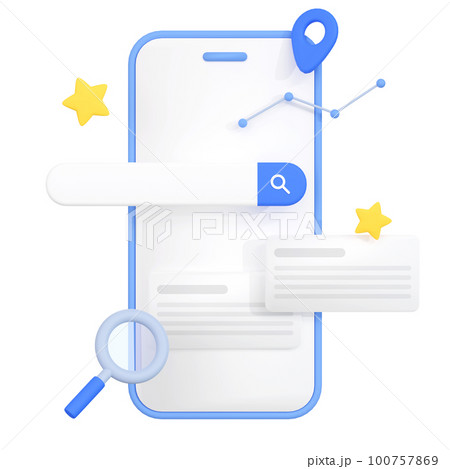検索エンジン最適化「SEO」のイメージの3Dイラスト