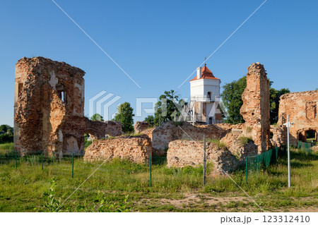 Belorussian tourist landmark attraction - ruins of old ancient castle in Golshany village, Grodno region, Belarus.