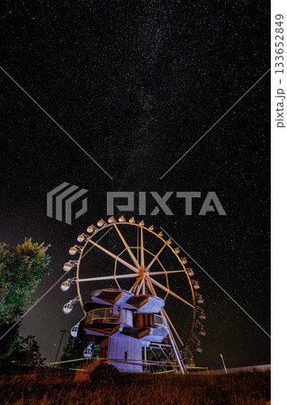 星空と観覧車のシルエット ― 北海道・深山峠の夜