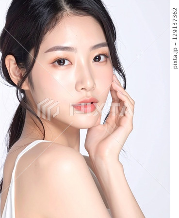 美しい肌を持つ日本人女性のビューティー素材。スキンケア、美容イメージ