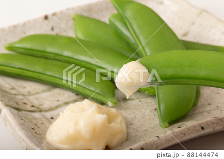 茹でたスナップエンドウ(スナックエンドウ)と豆