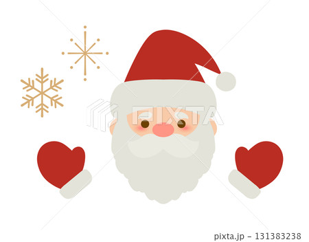 かわいいサンタクロースの顔、手袋と雪の結晶のベクターイラスト_クリスマスと冬の素材