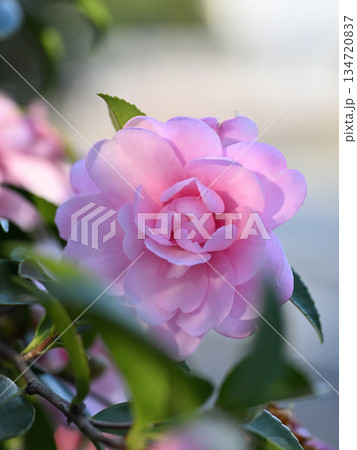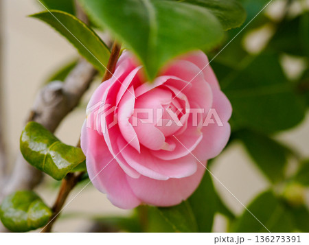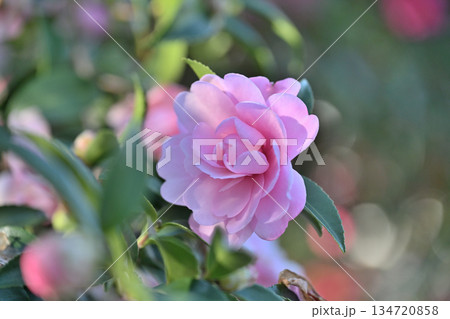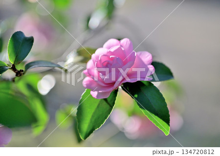 ツバキの花 ピンク色で可憐なオトメツバキの花 花の背景