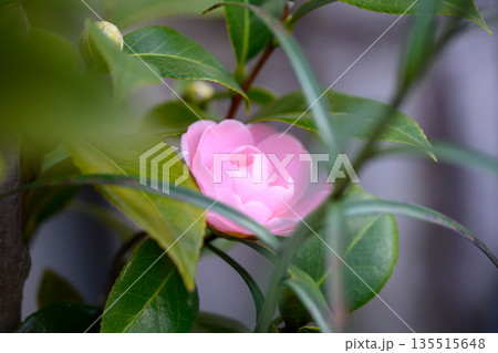 葉陰でそっと微笑む乙女椿 Gentle Pink Camellia
