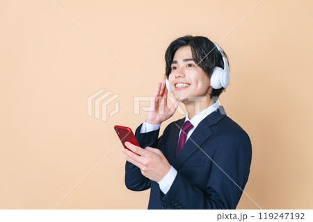 スマホで音楽を聴く男性