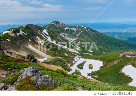 上富良野岳山頂からの残雪富良野岳