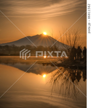 春の田貫湖Wダイヤモンド富士 静岡県富士宮市