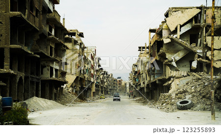 戦争で破壊されたシリアの町クネイトラ