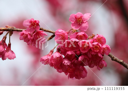 満開の桜の花 寒緋桜