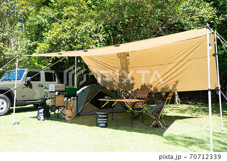 キャンプ場に設置されたタープ