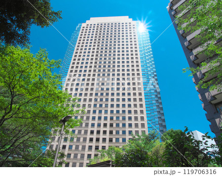 日本の東京都市景観8月15日。虎ノ門ヒルズなどを望む。新時代へ、希望の光