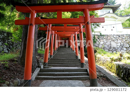 兵庫 出石 出石城 稲荷神社への参道鳥居と階段(初夏)