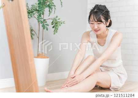 ふくらはぎの脂肪に悩みフットケアする日本人女性