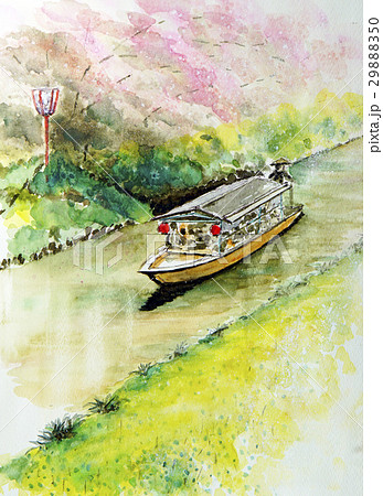 お花見の屋形船 手書き スケッチ 柳川