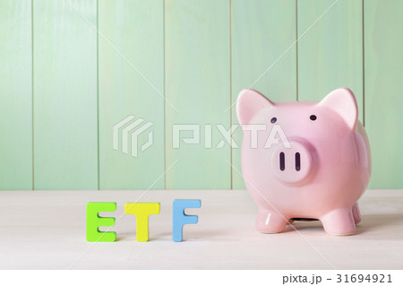 ETF exchange traded fund investment concept. Piggy