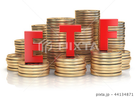ETF exchange traded fund onthe stacks of coins