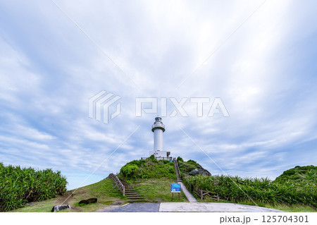 石垣島の観光スポット、御神崎灯台を正面から捉えた風景