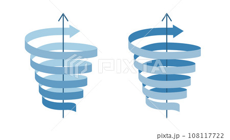 螺旋スパイラルに上昇するリボン帯状の矢印のセット
