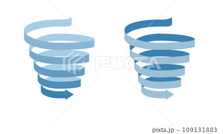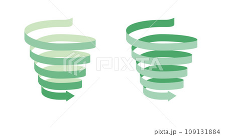螺旋スパイラルに下降するリボン帯状の矢印のセット