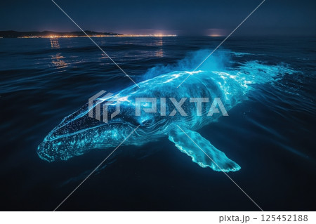 Majestic blue whale surfacing at night ocean wildlife photography mystical environment underwater view nature's wonder