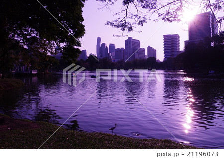 タイ王国バンコク、ルンピニー公園の夕景、夜景、風景