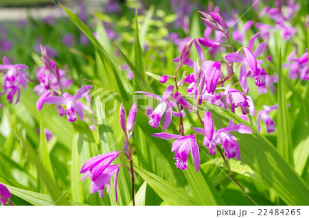 春の公園に咲くピンク色のシラン(紫蘭)の花