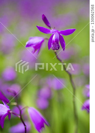 春の野原に咲くピンク色の紫蘭(シラン)の花