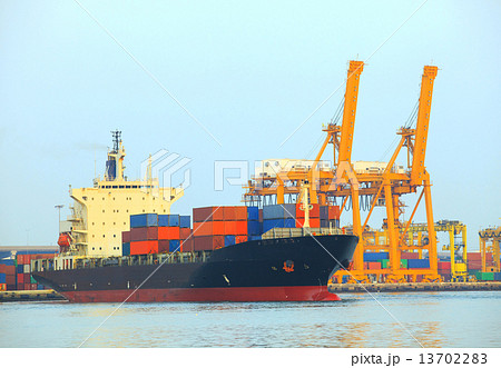 commercial container ship on port use for water transport and sh