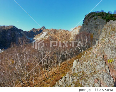 福島県福島市または猪苗代町の境にある秋季一切経山の山頂の景色