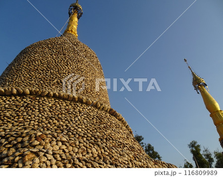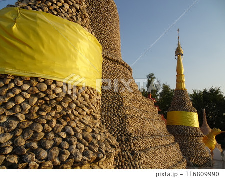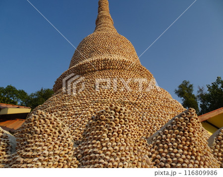 牡蠣の貝殻で作られたワットチェディホーイ アユタヤ・タイ
