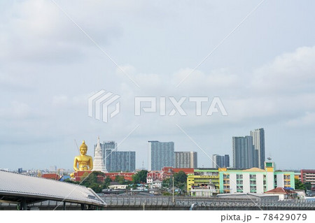 MRTブルーラインのバンパイ駅から見たワット・パクナムの巨大仏像
