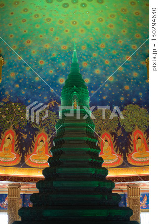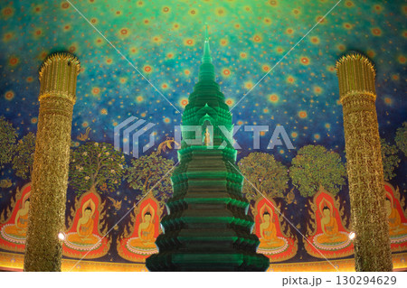 タイ・バンコクのワット・パクナム寺院の大仏塔内で見られる天井画