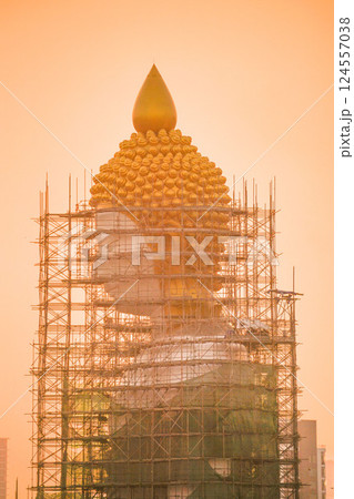 修繕中のタイ・バンコクの寺院「ワット・パクナム」の巨大仏像