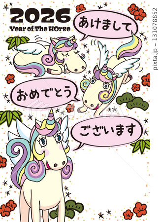 2026年賀状テンプレート「ヘタウマユニコーン」あけおめ 手書き用スペース付パターン