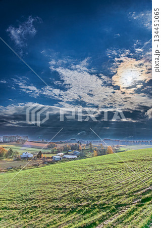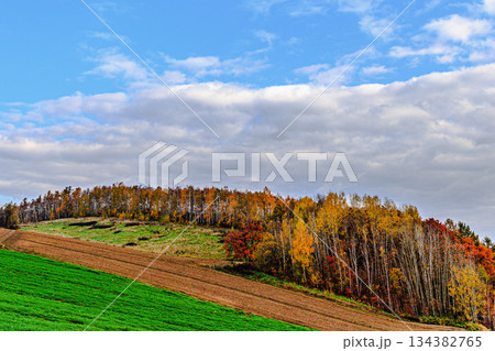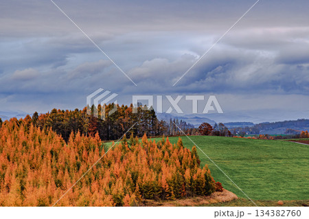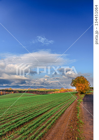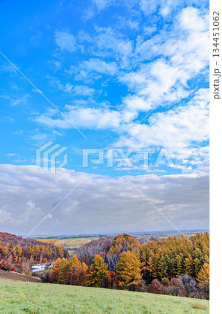 秋色に染まる美瑛の丘と広がる北海道の大地