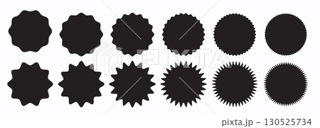 Circle shape with wavy edges. Round geometric form with scalloped borders. Blank text box, tag or label isolated on white background. Vector graphic illustration