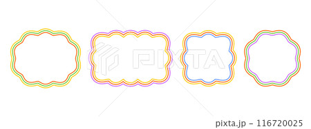 Set of round, square, rectangle and oval frames with wiggly edges. Colorful shapes with wavy borders. Picture or photo frames, empty text boxes, tags or labels elements. Vector graphic illustration