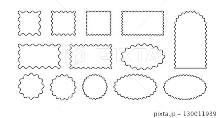 Zig zag Wavy Edge Rectangle, Oval, Circle Stickers Set. Vector Jagged Geometric Shapes. Abstract Elements