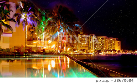 ハワイのワイキキビーチとダイヤモンドヘッド シェラトンホテル30階からの夜景