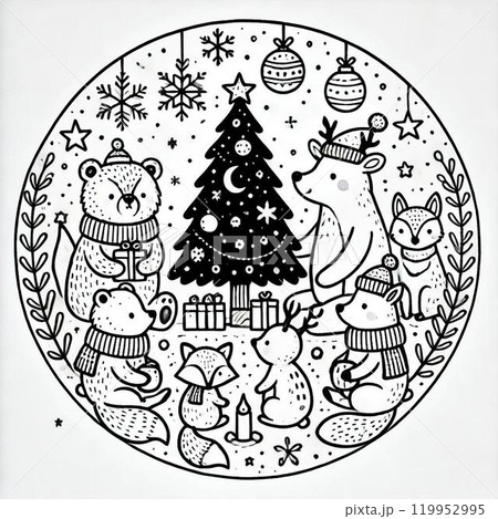 冬の動物のイラスト素材セット クリスマス 可愛い 手書きのイラスト