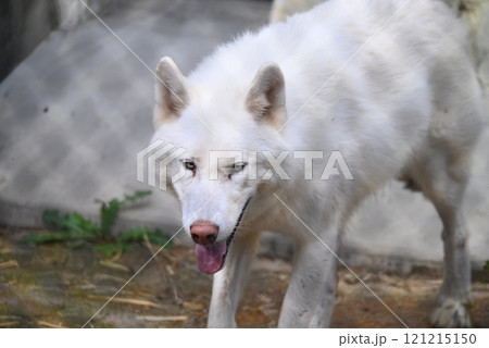 Animal life in a zoo, white and predatory wolves.