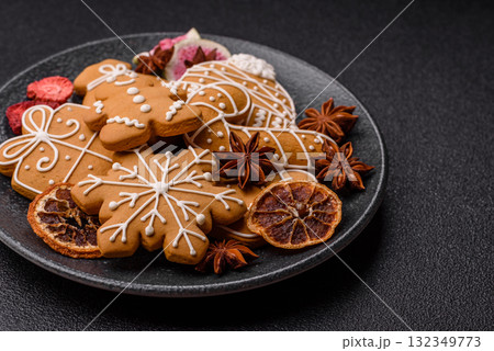 Christmas gingerbread, food for winter holidays, holiday table decoration. Christmas gingerbread