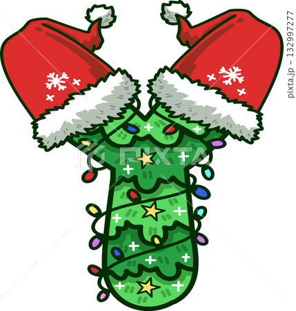 Christmas Tree Uppercase Alphabet Y with Santa Hat and Christmas Light