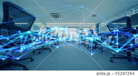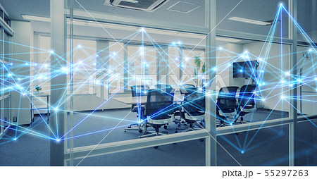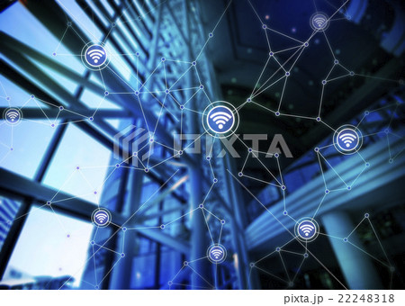 現代的ビルの内観と無線通信 アブストラクトイメージ